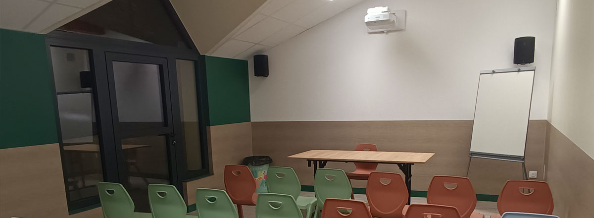 1 salle à manger, 2 salles d'activités ou de classe : la salle à manger et sa grande terrasse avec vue sont des lieux centraux d'animation et de détente à différents moments de la journée. Séparément, 2 autres salles sont également utilisables au quotidien : salles de classes, soirées spectacles et festives, projections de films, salles de jeux, activités manuelles... |
